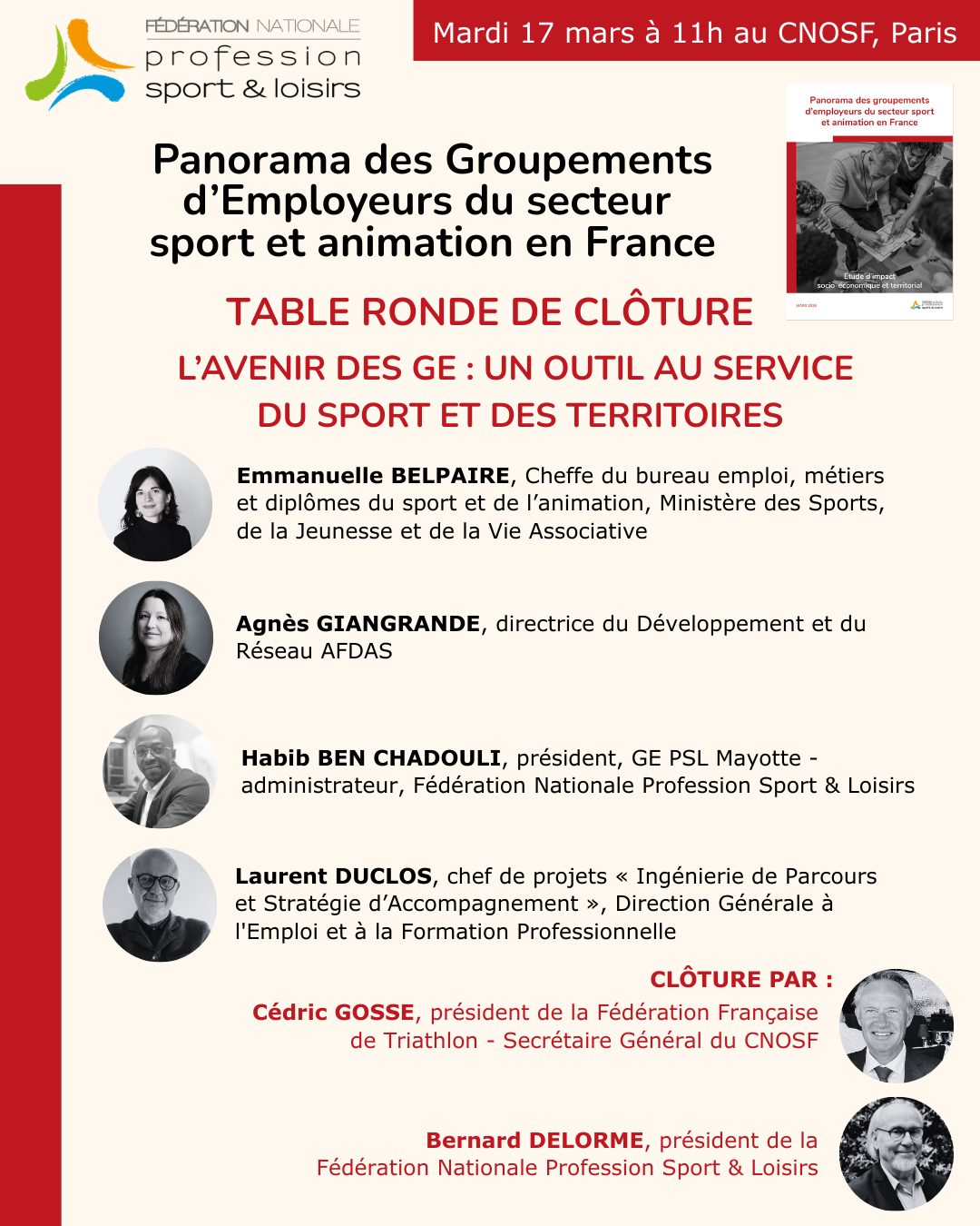 À l’occasion de la présentation de l’étude « Panorama des groupements d’employeurs du secteur sport et animation en France » mardi 17 mars au CNOSF, la Fédération Nationale Profession Sport & Loisirs organise une table ronde de clôture autour d’un enjeu clé :